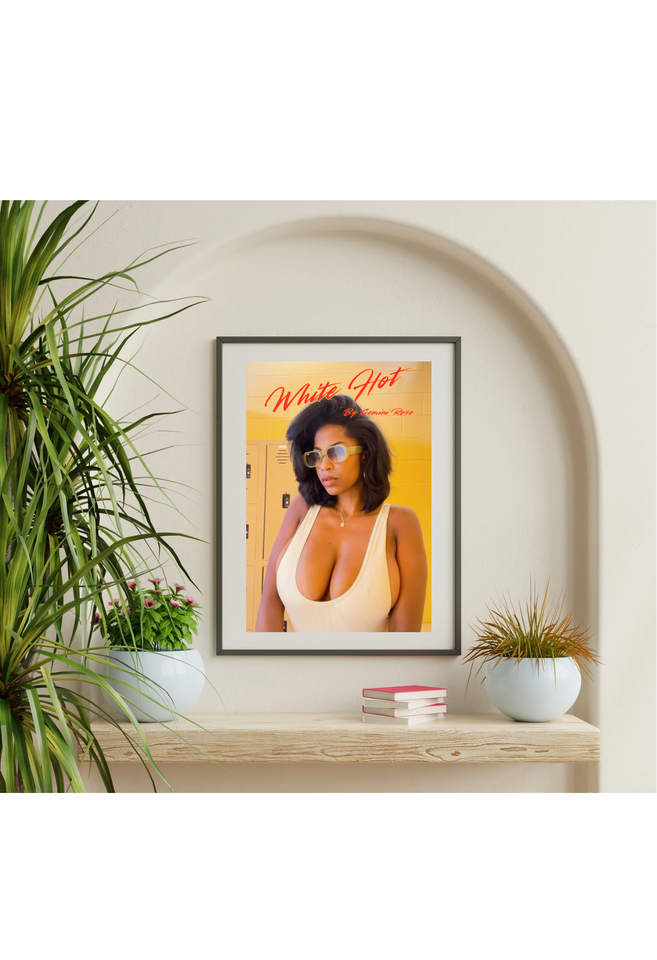 Captured in a sun-drenched, retro-locker backdrop, this poster blends sultry 80s athletics, JET Magazine glamour, and Gemini Rose’s signature WHITE HOT- aura. It’s the kind of image that feels like a secret… a moment you weren’t supposed to see… but can’t look away from.